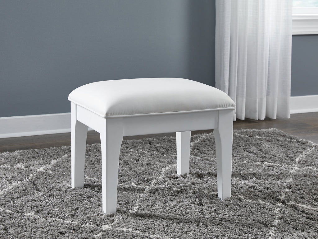 Transform your bedroom with this chic vanity stool. A bright white lacquer finish and sumptuous upholstery give this inviting seat a look all its own, adding a touch of understated glamour to your sophisticated sanctuary.