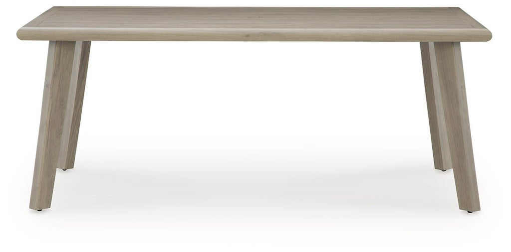 The naturally beautiful look of wood. The potential for endless days in the shade. And did we mention durability? This outdoor dining table is crafted with elevated style and everyday function in mind. With sturdy aluminum construction, it withstands the weather while making a chic statement on your deck or patio. A built-in umbrella hole keeps you covered while entertaining friends and family alfresco.