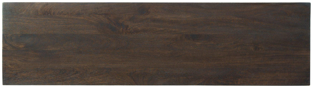 This accent cabinet is a versatile stunner with 3 geometric patterned door fronts in warm dark brown accented with goldtone finish metal hardware. Standing on a goldtone metal open frame base, the three-door console is aesthetically contemporary and sophisticated, ready to serve as buffet, console or media cabinet.