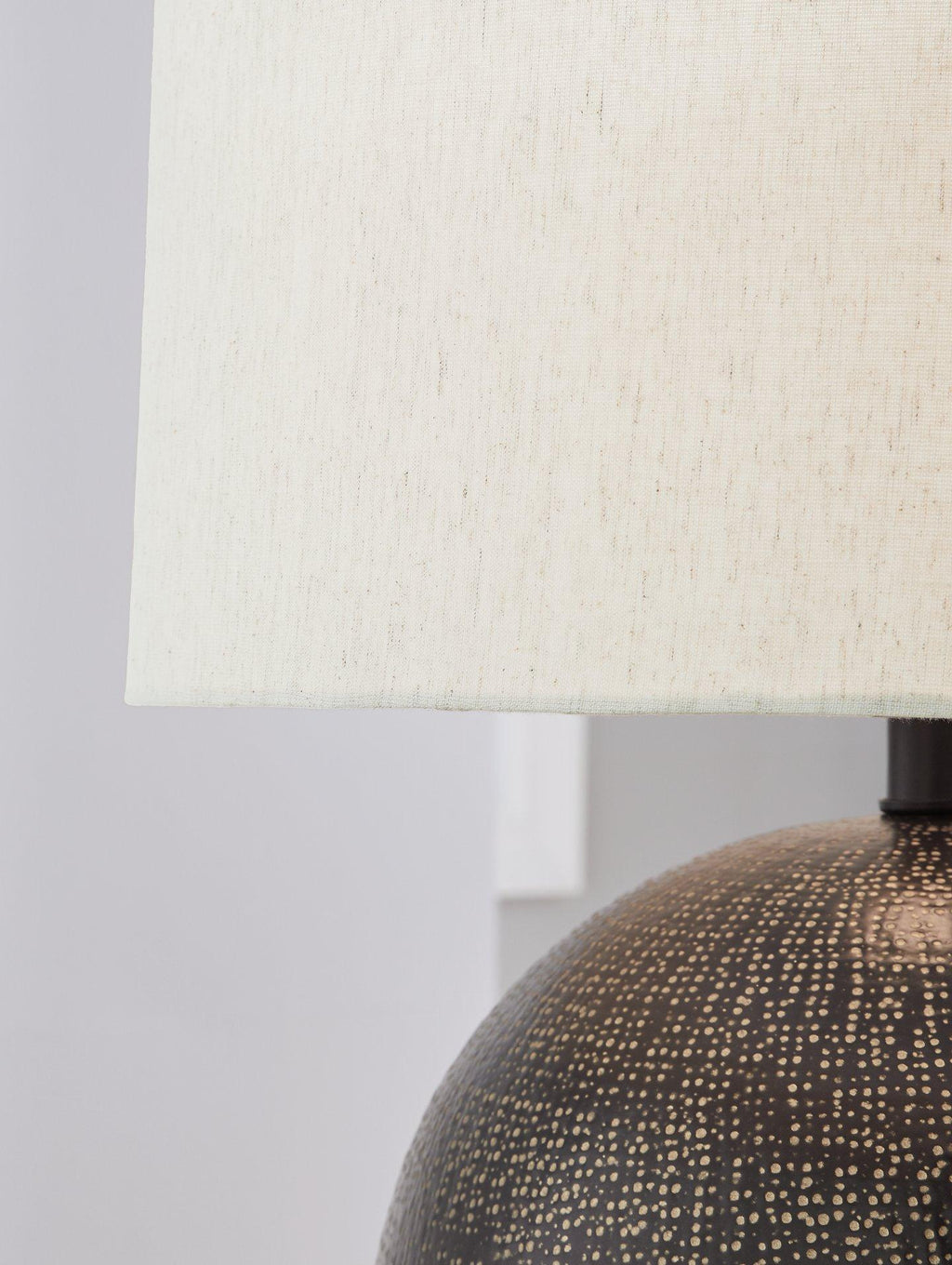 Turn on to a casually elegant sense of style with this table lamp. Its richly finished metal allures in a striking black with goldtone accents. Whether set on a side table or resting on your nightstand, it lightens the mood and brightens your home's overall ambiance and style.