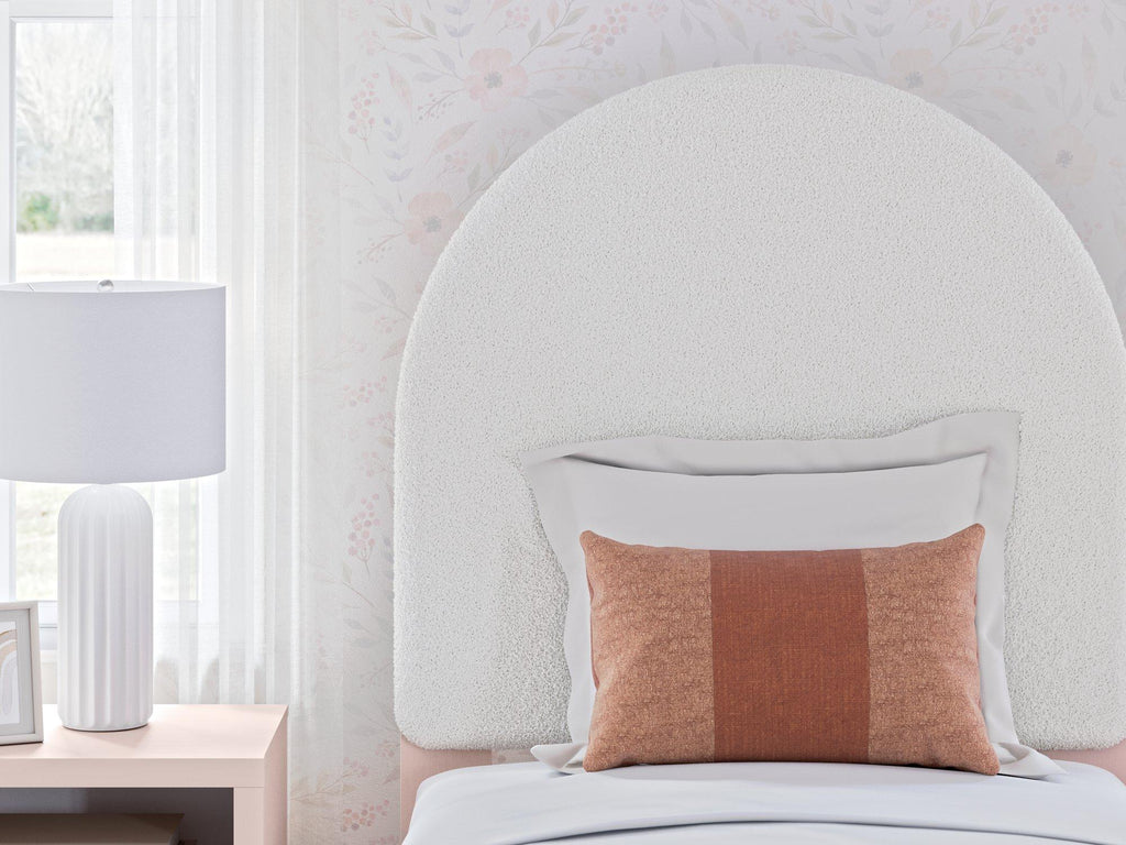 Pretty in pink. This upholstered panel bed with storage keeps the spirit of your home’s modern aesthetic while suiting all your young one’s needs. Its cozy-cute upholstery and subtle blush finish bring a playful, charming vibe to bedtime. Made for her and styled for you, it’s a lovely addition to a beautifully chic child’s bedroom.